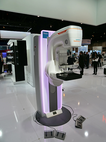 X線関連では,マンモグラフィ「MAMMOMAT Revelation」が新バージョンへと進化した。従来のトモシンセシスの画像処理時間を短縮化して検査の効率化を図れる。また,トモシンセシス画像から合成2D画像を再構成する“Insight 2D”の改良が図られ,従来よりも2Dマンモグラフィで撮影した画像に近い画質を得られるようになった。