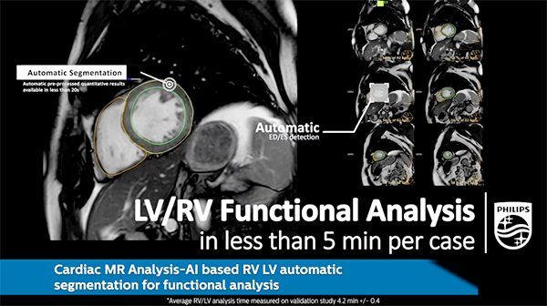 注目トピックとして発表されたマルチモダリティワークステーション「IntelliSpace Portal 12」では,AI技術を応用した心臓MR解析や肺結節検出,MR 4D flowや心筋ストレイン解析などの解析アプリケーションが提供される。解析の自動化や精度向上を可能にし,幅広い領域の診療を支援する。また,COVID-19に関連するトピックとして,多彩なスペクトラルイメージングが可能な「IQon Elite Spectral CT」を用いて,COVID-19肺炎の早期検出に電子密度画像を活用するケースなどが紹介された。