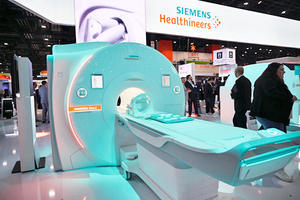 ハイパワー3T装置「MAGNETOM Cima.X」と0.55T MRI「MAGNETOM Free.Max」を展示し,「Deep Resolve」の適応拡大をアピール