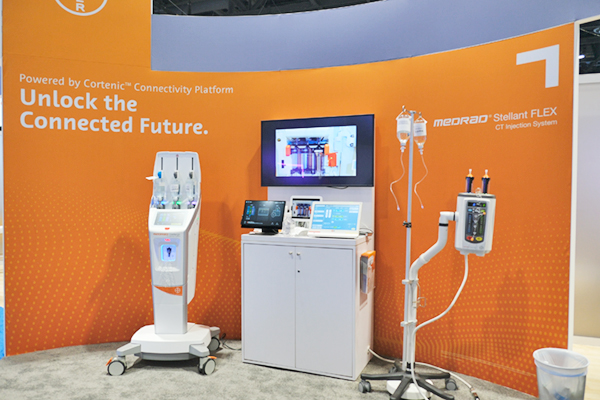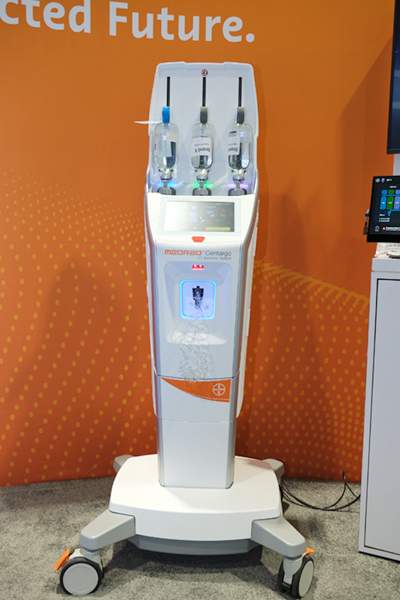 Bayer(バイエル)は,放射線領域で100年以上の歴史があり,CTやMRI用造影剤やインジェクションシステム,AIアプリケーション,ネットワークシステムなどのラインアップを有している。同社は,それらのソリューションを通じて,効率的で最適化された患者ケアの提供をコンセプトに展開している。RSNA2024のブースでは,2024年11月に米国食品医薬品局(FDA)の認可を取得したばかりのマルチペーシェントユースインジェクションシステム「MEDRAD Centargo CTインジェクションシステム」を中心に展示した。