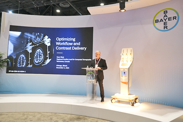 また,欧米向けに展開するAIソリューションも紹介したほか,ブース内のBayer Visionary Theaterでは,CT Regional Lead in British Columbia, CanadaのSean West氏が「Optimizing Workflow and Contrast Delivery」と題して,米国に先駆けて導入したカナダでの経験やその有用性について発表した。