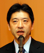 情報交換会に駆けつけた衆議院議員の中川秀直氏 |