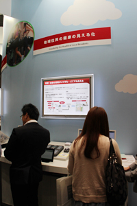 富士通フォーラムの展示会場の中の「ソーシャルイノベーションゾーン」で健康・医療コーナーとして,ヘルスケアソリューションが紹介された。