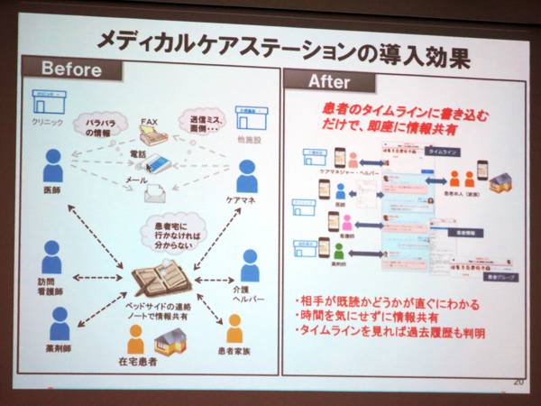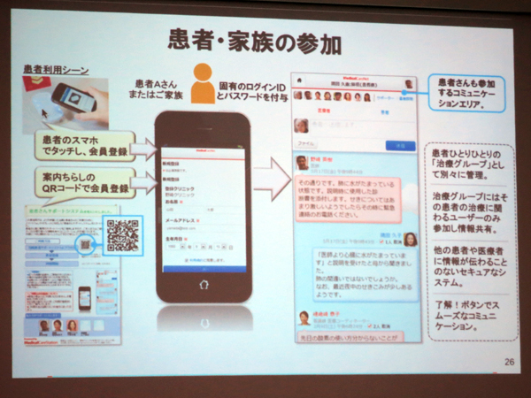 ソフトバンクテレコム(株)など3社は,医療・介護関係者を対象とした完全非公開型SNS「メディカルケアステーション」を2013年7月16日(火)から開始する。それに先立ち,7月11日(木)に,同社の本社に隣接する汐留住友ビルにおいて,記者発表会を行った。