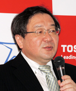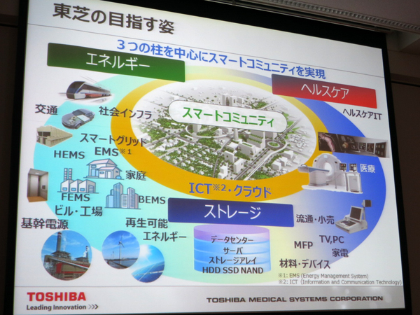 新製品発表会で挨拶した同社代表取締役社長の綱川 智氏は,東芝グループがめざすスマートコミュニティ実現に向けた3つの事業領域に,ヘルスケア分野が掲げられていると説明。東芝メディカルシステムズとして,グローバル化の推進と治療分野への事業領域の拡大を図るという事業戦略を示した。その上で,医療用裸眼3Dディスプレイが,東芝グループの幅広い技術を幅広い領域に活用し創造的成長を実現する製品であると述べた。