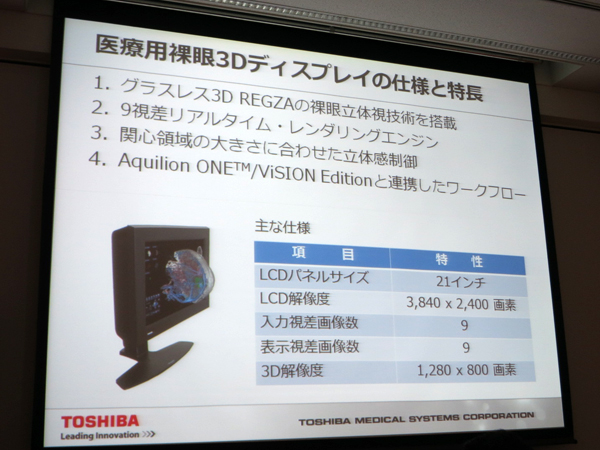 東芝メディカルシステムズが「医療用裸眼3Dディスプレイ」を発表
