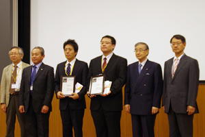 受賞講演後の記念撮影。左から,渡辺氏,佐々木氏,荒田氏,林氏,北島氏,光石氏 |