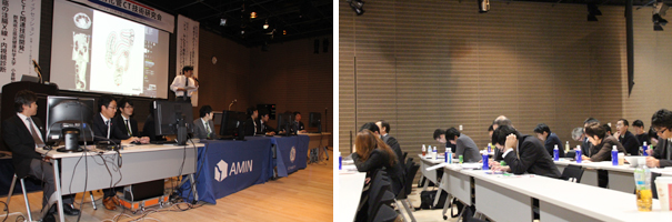 その後,共催4社(アミン(株),(株)AZE,GEヘルスケア・ジャパン(株),富士フイルムメディカル(株))のワークステーションにおける大腸解析を解説するとともに,参加者はタブレット端末にて,トレーニング用の症例の解析,読影を体験した。