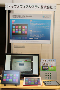 トップオフィスシステム:透析業務支援システム「dottoHD」などを紹介。メディカルトラックで泉南新家クリニックの講演も行われた。 |