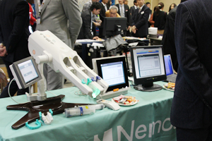 研究会の終わりに,次回当番世話人である滋賀医科大学附属病院の牛尾哲敏氏が挨拶を行った。第6回ADCT研究会は,2015年1月17日(土)に福岡市天神にて開催予定となっている。会場外のホワイエでは,東芝メディカルシステムズをはじめ協賛企業の(株)AZEやコニカミノルタヘルスケア(株),ザイオソフト(株),(株)根本杏林堂などが展示を行った。