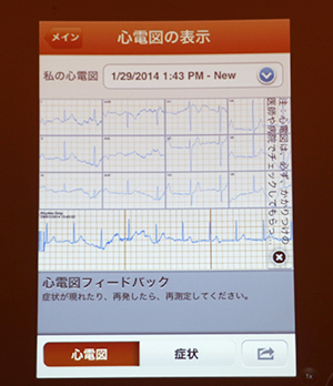 スマートフォンなどで12誘導心電図が確認できる。 |