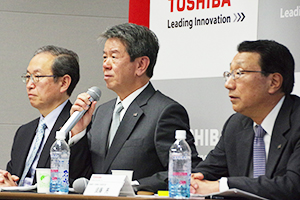 (株)東芝は2014年2月20日(木),ヘルスケア事業戦略の説明会を開催し,予防,診断・治療,予後・介護,健康増進の4分野での事業展開を加速させ,2015年度に売上高6000億円,2017年度に1兆円をめざすことを発表した。川崎に2013年に建てられた東芝スマートコミュニティセンター(神奈川県川崎市)で行われた説明会には,代表執行役社長の田中久雄氏と代表執行役副社長の須藤 亮氏,ヘルスケア事業開発部長兼東芝メディカルシステムズ(株)代表取締役社長の綱川 智氏が出席した。