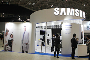サムスン電子は,新たにラインナップに追加された,最上位機種の産婦人科向け超音波診断装置「UGEO WS80A」,ラップトップ型のコンパクトなサイズに高画質エンジンを搭載してハイブリッドな検査を可能にする「UGEO HM70A」,全面タッチパネルを採用しタブレットサイズの「UGEO PT60A」を中心に展示した。UGEO WS80Aは,ハイブリッドビームフォーミングエンジンによる深部までの鮮明な描出,スペックルノイズを軽減しコントラスト分解能を向上するSDMRなどのイメージプロセシング技術による高画質化を実現。ボリュームデータによる胎児長骨の自動検出と計測が可能な“5D LB”,胎児心筋機能の指標であるMPIの自動計測機能など豊富なアプリケーションを搭載する。また,Android用アプリ“Hello Mom”によって,スマートフォンなどの携帯端末に胎児の画像や動画をダウンロードすることも可能だ。UGEO HM70Aは,15.1インチのカラーLCDモニタを搭載し重さ6.1kgのラップトップ型の超音波装置。コンパクトながらハイブリッドビームフォーミングエンジンやSDMRなど高画質を提供する技術を搭載し,一連の操作を自動化しワンボタンでの検査を可能にする“EZ-Exam”やパラメータを自動的に最適化する“Quick Scan”などで効率的な検査を支援する。