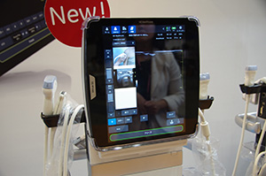 装置関連では,昨年の日本超音波医学会第86回学術集会前に発表された「Xario 200」と,11月に発表された「Xario 100」も展示された。Xario 200は従来のXarioより大幅にコンパクト,軽量化を図った装置。本体は占有面積が約84%,重量が約55%になった。19インチ型モニタを採用したほか,操作パネルの左右動,上下70cmの昇降を可能にするなど,優れた操作性を実現している。また,消費電力も従来機種の約半分に抑えられている。