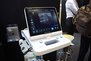 併設の展示会は,「Ultrasonic Week 2014国際展示会・企業展示会」として,パシフィコ横浜展示ホールA+Bで36社が出展して行われた。Point of Care(POC)に対応するコンパクトタイプから,エラストグラフィや造影超音波まで対応する最新のハイエンド装置まで各社の最新のラインナップがそろった。また,展示ホールには,ハンズオンセッション会場やポスター展示,オープンシアターが設けられたほか,福島県で甲状腺検査に使用されている超音波健診車も展示された。