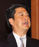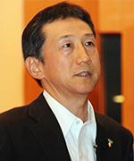 続いて,文部科学省文部科学審議官の土屋定之氏,科学技術振興機構理事長の中村道治氏,COI STREAMビジョン1ビジョナリーリーダーの松田 譲氏に加え,弘前大学と脳疾患の予兆発見および予防法創出のための仕組み構築に向けた共同研究を行っているGEヘルスケア・ジャパン(株)代表取締役社長の川上 潤氏が来賓挨拶をした。川上氏は,弘前大学COIに参画して,弘前市から世界に通じるイノベーションを推進していきたいと述べた。