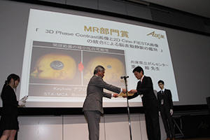 続いて,入賞作品のプレゼンテーションが行われ,最終選考の結果,ニューカマー部門賞に小林隆幸氏(北里大学北里研究所病院)の「Dual Energy CTによる大腸術前画像」,CT部門賞に寺内ゆかり氏(小川赤十字病院)の「二相注入法を利用した食道癌術前シミュレーション」,MR部門賞に重永 裕氏(兵庫県立がんセンター)の「3D Phase Contrast画像と2D Cine-FIESTA画像の統合による脳表動静脈の鑑別」がそれぞれ選ばれた。また,阿部 駿氏(平鹿総合病院)の「特殊マスク画像を用いた高分解能VR画像の作成」(CT部門)と,大屋光司氏(翠清会梶川病院)の「リージョングローイングを利用した,AVMに対する簡易的feeder選定マルチレイヤー画像」(MR部門)が特別賞を受賞した。
