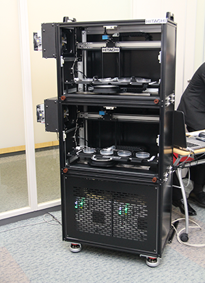 発表会場に展示された自動解析システムの試作機 |