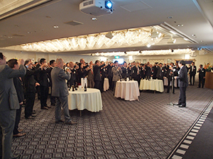 なお,当日は,祝賀会に先立ち,平成29年度定時社員総会と活動報告会,表彰式が行われた。定時社員総会では,平成28年度決算案,役員の一部変更の2議案が承認され,新たに,多田荘一郎氏〔GEヘルスケア・ジャパン(株)〕,新延晶雄氏〔富士フイルムメディカル(株)〕,伊藤邦昌氏〔(株)島津製作所〕が理事となった。さらに,新副会長として,伊藤氏と後藤禎一氏〔富士フイルム(株)〕が選任された。