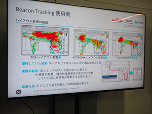 この日野工場のBrilliant Factoryでの業務改善については,同社製造本部本部長 工場長の藤本康三郎氏から解説が行われた。日野工場は全世界に450か所あるGEのショウケース工場と位置づけられており,他企業も見学に訪れている。同工場でBrilliant Factoryは,(1)デジタル技術と,(2)ムダの排除を意味するリーン,(3)先進の製造技術,(4)3Dプリンタにより,人や生産工程によるバラツキ,ムダを可視化して,改善を図っていく。2016年の活動成果として,リードタイムを65%削減できた生産ラインがあるという。このほか,経済産業省の予算で,2015年度に独立行政法人日本貿易振興機構(JETRO)の「グローバルイノベーション拠点設立等支援事業」に採択された実証実験において,(株)村田製作所のRFIDを用いた「Hino Beacon Tracking System」を構築し,工場内の職員の動線を可視化して,それを基にレイアウト変更を行い,最適化を図っている。