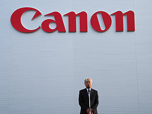 工場建屋の壁面に新たに掲げられた「Canon」のロゴをお披露目 |