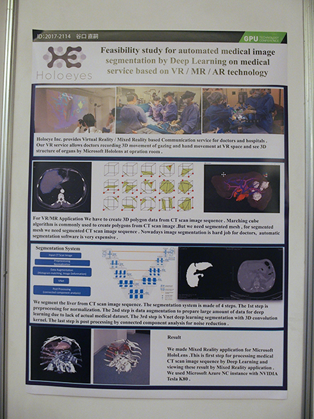 ポスターセッション:谷口直嗣氏〔HoloEyes(株)〕の「VR/MR/ARを用いた医療向けサービスにおけるDeep Learningを用いた医療画像セグメンテーションの自動化事例」