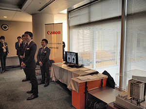 会場外では,アミン(株),キヤノンメディカルシステムズ(株),富士フイルムメディカル(株)などが展示 |