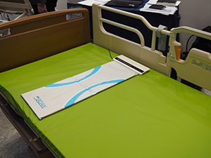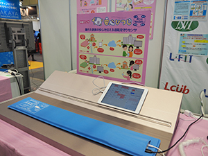 見守り機器には,ベッドや介護用品を手がける企業も力を入れている。パラマウントベッド(株)は,ブース内で「眠りSCAN」のPRを行った。ベッドに眠りSCANをセットすることで,入居者の状態をリアルタイムでモニタリング。睡眠,覚醒,起き上がり,離床といった変化や大幅な呼吸の変動時に通知する。また,(株)エヌジェイアイは,体動,心拍,呼吸,離床をモニタリングする「安心ひつじα」のデモンストレーションを行っていた。入居者に異常があった場合は,職員や家族のスマートフォンなどに通知が届く。