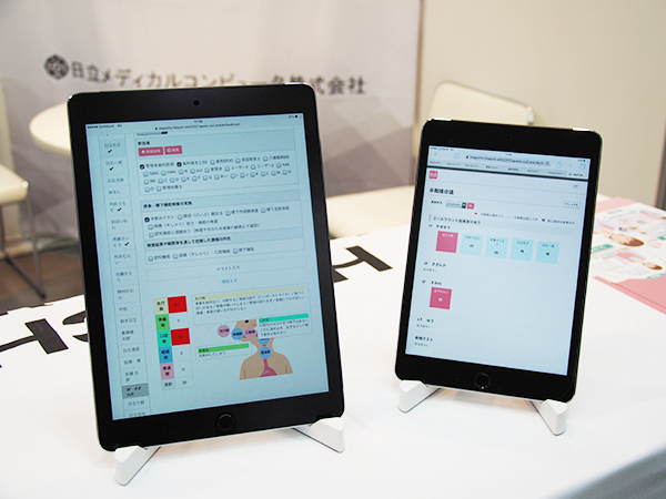 (株)eWeLLは,看護師目線でカルテの見やすさ,入力のしやすさを追究した訪問看護クラウド支援サービス「iBow」を展示した。タブレットで訪問先からカルテを閲覧・入力することで,業務効率向上やスムーズな情報共有を実現する。「訪看鳥」(日本医師会)などのレセプトコンピュータと連携し,保険請求処理業務も正確,簡単に実施できる。現在,全国約400ステーションに導入されており,現場の声を取り入れたアップデートを毎月行っている。