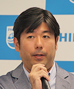 日本代表選考事前説明会・記者発表会では,はじめにフィリップス・ジャパンの堤 浩幸代表取締役社長が挨拶に立ち,プログラム開催の背景を紹介した。堤氏は,フィリップスが掲げる「2025年までに30億人の人々の生活を向上させる」というビジョンや,AIをヘルステックに活用する取り組み“Adaptive intelligence”などについて説明した上で,新しいアイデア,積極的な参加を期待していると述べた。
