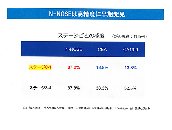 N-NOSEの最新臨床研究結果(がん患者は感度,健常者は特異度)