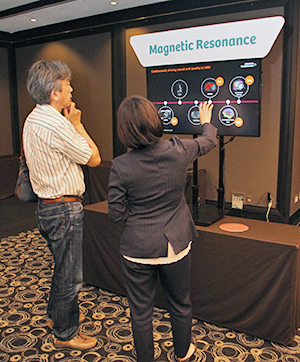 今回,講演会場のほかに展示会場が設けられ,CT・Radiation Oncology,MRI,Imaging IT,Angiography,Ultrasound,Point of Care(血液ガス分析装置,血液凝固分析装置)のプレゼンテーションブースの設置や機器展示が行われた。講演の合間には多くの参加者が足を運び,会場は熱気にあふれていた。
