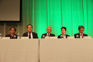 超音波部門審査員。右から伊藤 浩 氏(岡山大学),瀬尾由広 氏(筑波大学),松尾 汎 氏(松尾クリニックほか),濵口浩敏 氏(北播磨総合医療センター),畠 二郎 氏(川崎医科大学) |