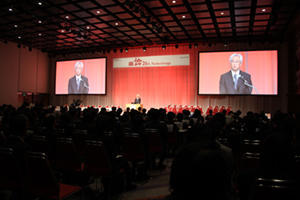 特別講演終了後の表彰式では,各部門の最優秀賞発表と審査員による講評,そして同社代表取締役社長の瀧口登志夫氏から表彰が行われた。最後に挨拶に立った瀧口社長は,画像の臨床的な価値は,その時々の臨床ニーズや技術に基づいて常に変化しているとし,形態画像から機能画像へと発展する中,臨床現場におけるユーザーの日々の努力に呼応して,同社としてもさらに進化していく必要があると述べた。さらに,世界で初めてディープラーニングを使った画像再構成をCTに搭載し,今後MRへも拡大していくことで,臨床価値をさらに高める開発に尽力していくとし,ユーザーの知恵をさらに有効活用するためのツールとしてAIを開発していくとの方向性を示した。