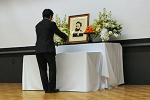 祭詞・献花を行う上田輝久代表取締役社長