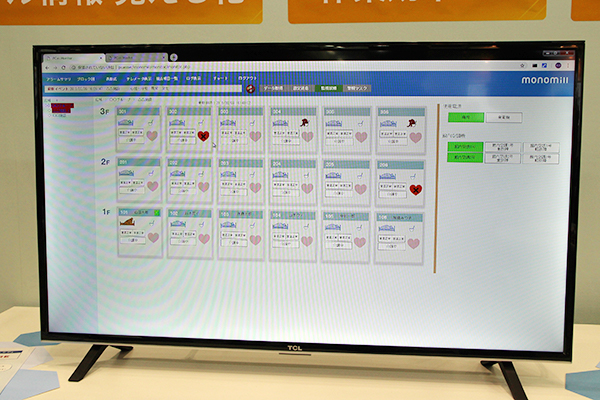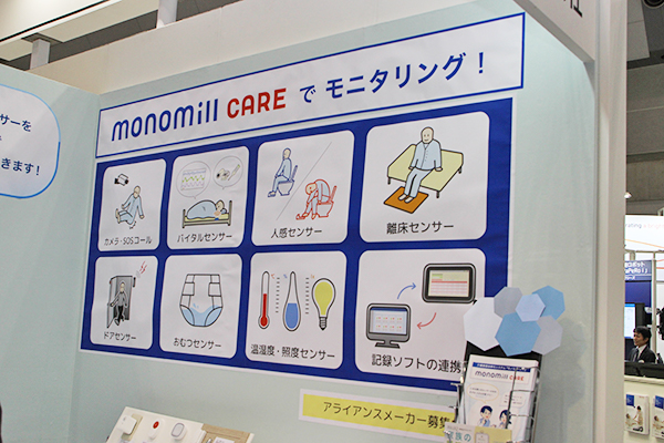 エフ・アイ・ティー・パシフィック(株)が提供する介護業務効率化システム「monomill CARE」は,IoTプラットフォームをベースに,カメラやバイタルセンサー,人感センサー,ドアセンサーなどの各種センサーの情報を,一つの画面でまとめて表示し,状況を確認することができる。メーカーや種類を問わず,現在使用しているセンサーをそのまま使えるうえ,専用ソフトなどは不要で,標準装備のWebブラウザのみでPCやスマートフォンから同時に,どこからでも確認できるため,スモールスタートが可能となる。基幹システムは,テレビ局送信所の一元管理システムとして2005年から稼働しており,介護システムへの応用により,業務改善や負担軽減への寄与をめざす。