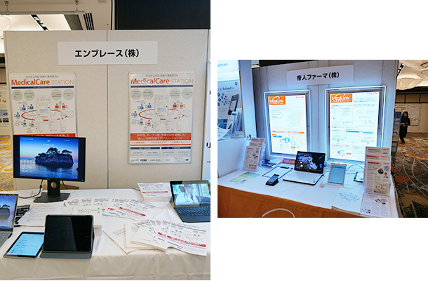 医療介護連携における多職種での情報共有のためのSNSも人気(写真左からエンブレース,帝人ファーマ)