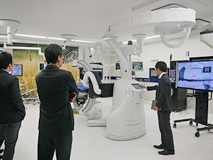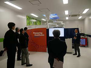 フォーラムでは,まずゲティンゲエクスペリエンスセンター東京の見学ツアーが行われた。この施設は同社のショウルームであり,GEヘルスケア・ジャパン(株)の「Discovery IGS 7 OR」や(株)フィリップス・ジャパンの「Azurion 7 C20 with FlexArm」と,Maquet Magnus 手術台システムを組み合わせたハイブリッド手術室を展示し,デモンストレーションを行えるようにしている。見学ツアーでは,両社のほか,協業するシーメンスヘルスケア(株)が「ARTIS pheno」,キヤノンメディカルシステムズ(株)が「Alphenix」シリーズのプレゼンテーションを行った。