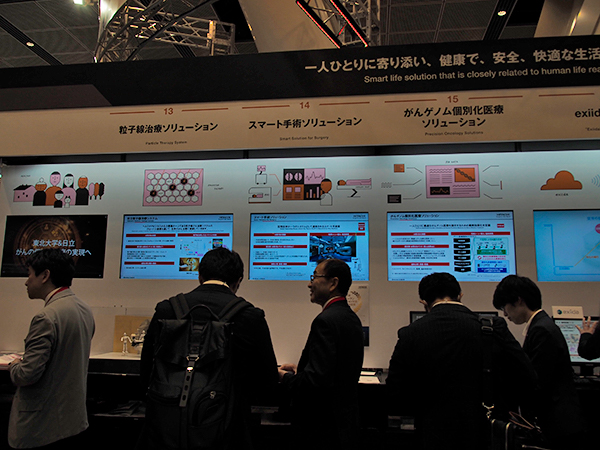 ヘルスケア関連の展示としては,「粒子線治療ソリューション」「スマート手術ソリューション」「がんゲノム個別化医療ソリューション」の3つを紹介。介護福祉関連ではIoTを活用した「介護施設向けケア支援ソリューション」をアピールしたほか,単身高齢者向けの見守りサービスなども展示された。また,ガラス棟7階に設けられた展示会場では,デジタルトランスフォーメーションを推進する最新技術を展示。医療分野への応用も期待される「XAI:説明可能な人工知能」など,最先端のテクノロジーを来場者に紹介した。