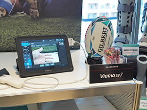 チームドクターの必需品である,タブレット端末型の超音波画像診断装置「Viamo sv7」 |