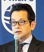 記者発表会でははじめに,代表取締役社長の堤 浩幸氏がTasyの日本展開についてスピーチした。堤氏は,“ヘルステックでヘルスケアにおける価値創造を強化し,全体最適化をめざす”とのフィリップスのビジョンを述べた上で,医療機関が抱えている問題の解決にTasyが貢献できるとして,これまでのTasyの実績や特徴について説明した。Tasyは現在,世界950以上の医療機関に導入されており,1日に扱う患者数は300万人に上る。ブラジルのユーザー事例として,導入1年目の収益が20%向上,受け入れ可能患者数が200%増加という効果があったことが紹介された。堤氏は,日本国内の電子カルテシステムの普及率が30数%にとどまっている理由として,院内のさまざまな情報が別々のシステムで管理されているサイロ化があると述べ,現在はそれぞれが個別最適化されたシステムをつなぎ合わせているため,連携プロセスの分裂やデータの分散,高コストといった課題があるとした。それに対して,全体最適化をめざしたTasyでは,切れ目のない連携や集約されたデータの活用,優れた費用対効果,医療機関に合わせて柔軟に利用できるといったメリットがあることを説明した。そして,Tasyは,フィリップスがめざすヘルスケアを中心としたコミュニティの創造を実現するための情報プラットフォームであり,人々の健康な生活から予後までの最適化に貢献していくと締めくくった。