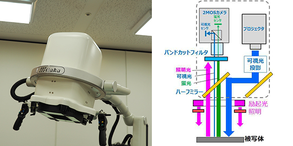 三鷹光器(株),京都大学医学部附属病院,パナソニック(株)は,プロジェクションマッピングの技術を応用し,患者の体表や臓器にリアルタイムで血流などの患部情報を投影,手術ガイドを行う支援システム「Medical Imaging Projection System(MIPS)」を開発,2019年11月20日にICG蛍光観察装置としてクラスⅡ医療機器の製造販売承認を取得した。プロジェクションマッピングを応用したリアルタイム手術ガイドシステムとしては世界初となる。2020年2月3日(月)には,開発に携わった企業・機関の関係者が出席して記者発表会が開催され,承認取得までの経緯や装置の特徴,今後の展望などが紹介されたほか,実機によるデモンストレーションも行われた。