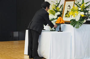 続いて,代表取締役社長の上田輝久氏による祭詞・献花が行われた。