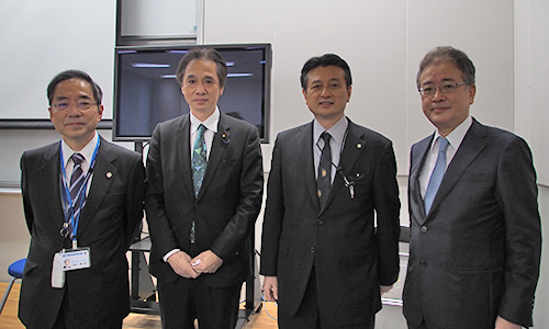見学会出席者・参加者(左から東京医科歯科大学・田中学長,畦元将吾氏,東京医科歯科大学・大川 淳理事・副学長,日本医学放射線学会・青木茂樹理事長)