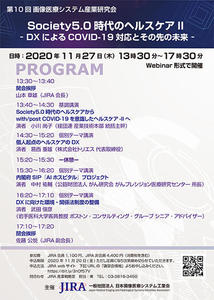 一般社団法人日本画像医療システム工業会(JIRA)は2020年11月27日(金)に,10回目となる「画像医療システム産業研究会」を開催した。JIRAでは,画像医療システム産業の発展の方向性や課題を考える場として同研究会を毎年開催している。今回は新型コロナウイルス感染症(COVID-19)の影響によりオンライン形式での開催となった。テーマには,「Society 5.0時代のヘルスケアII—DXによるCOVID-19対応とその先の未来—」が掲げられ,with/post COVID-19時代における医療のデジタルトランスフォーメーション(DX)について,産業界や医学界の専門家が講演した。開会に当たって挨拶したJIRAの山本章雄会長は,今後,労働力人口が減少し医療従事者の不足が進むことが予想されることから,医療の効率化を図るためにもDXが必要だと指摘。各講演からヘルスケアにおけるDXの方向性を考えてほしいと述べた。