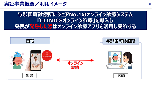 今後は,島民向けオンライン診療模擬体験会が開催されるほか,各家庭に設置された防災無線やポスター,折り込み広告などで事業の周知を図っていく。なお,実証期間は2021年2月28日までを予定している。