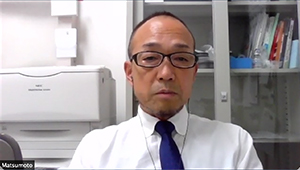 3演題目として,「IVRにおける従事者の水晶体被ばく管理について」と題して,兵庫医科大学病院放射線技術部の松本一真氏が解説した。松本氏は,IVRでの水晶体被ばく線量に関する研究の結果を交え,防護メガネや天吊型防護板の適切な使用により,線量限度の超過は防ぎうると解説。他方で,不均等被ばく測定用の頸部バッジは水晶体線量を過大評価する傾向にあることから,適切な管理が必要であるとした。また,「日本の診断参考レベル」(DRLs)の公開や画像処理技術向上による低パルス化の実現などにより,線量の最適化が図られているのではないかと述べた。