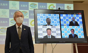 五島中央病院事務部長の藤野弘幸氏(右下)