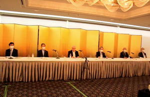 KKRホテル東京(東京都千代田区)並びにオンラインで行われた記者会見では,新会長に選出された三村氏が就任にあたっての抱負を述べた。三村氏は,約1年半にわたる新型コロナウイルス感染症の流行への対応について,「医療を止めない」という強い信念の下,業界が一丸となって医療機器・資材の確保などに取り組んできたと強調。同時に,医療が国の安全保障上極めて重要であることが再認識されたとし,サプライチェーンの見直しや必要物資の備蓄などの観点から,政府への提案などを行っていきたいと述べた。また,医療のDX(デジタルトランスフォーメーション)をさらに推進しつつ,プログラム医療機器の法規制や診療報酬についての議論を深め,行政への提言などを行うワーキンググループの設置を予定しているとした。さらに,執行部の運営体制について,医療機器をめぐる課題の多様化を受け,7名の正副会長がそれぞれの経験を生かして分担し,「ワンチーム」として取り組んでいくと述べ,今後の活動への意欲を示した。