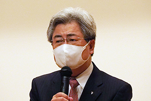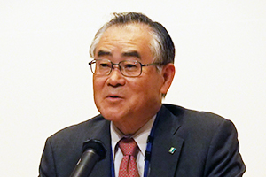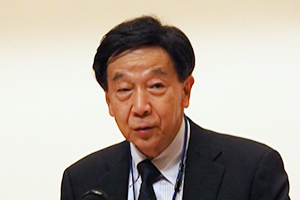 この後,来賓として,日本医学会会長の門田守人氏が挨拶した。門田氏は,AIへの期待を示し,社会実装の早期実現を見たいと述べた。さらに,課題関係者の挨拶として,日本医師会副会長/AIホスピタル評価委員会委員長の今村 聡氏,文部科学省研究振興戦略官の高木秀人氏,厚生労働省厚生科学課課長の佐々木昌弘氏,経済産業省医療・福祉機器産業室長の廣瀬大也氏が登壇した。